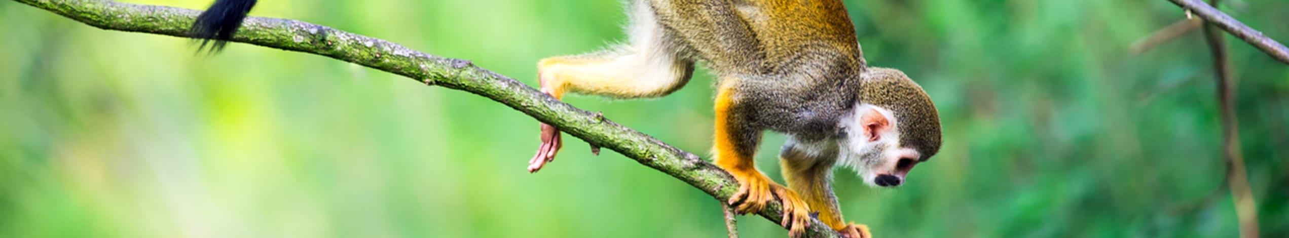 Bag vores lodge kunne vi gå lige ind i junglen. Stien var meget smal og oversvømmet mange steder, så guiden måtte ofte lave en ny sti ved at hugge grene ned med sin machete, ligesom man ser på film. Ofte hørte man høje lyde lige over sig. Var det aber? Kunne det være en slange? Vi fik ingen slanger at se, mest flotte fugle og aber af forskellig slags, og myg i massevis! Desuden så vi en masse edderkoppehuller i jorden, en af dem kom da også ud for at hilse på. Jeg har aldrig set så stor en edderkop ude i den virkelige verden. Den var på størrelse med en underkop og havde de tykkeste ben.